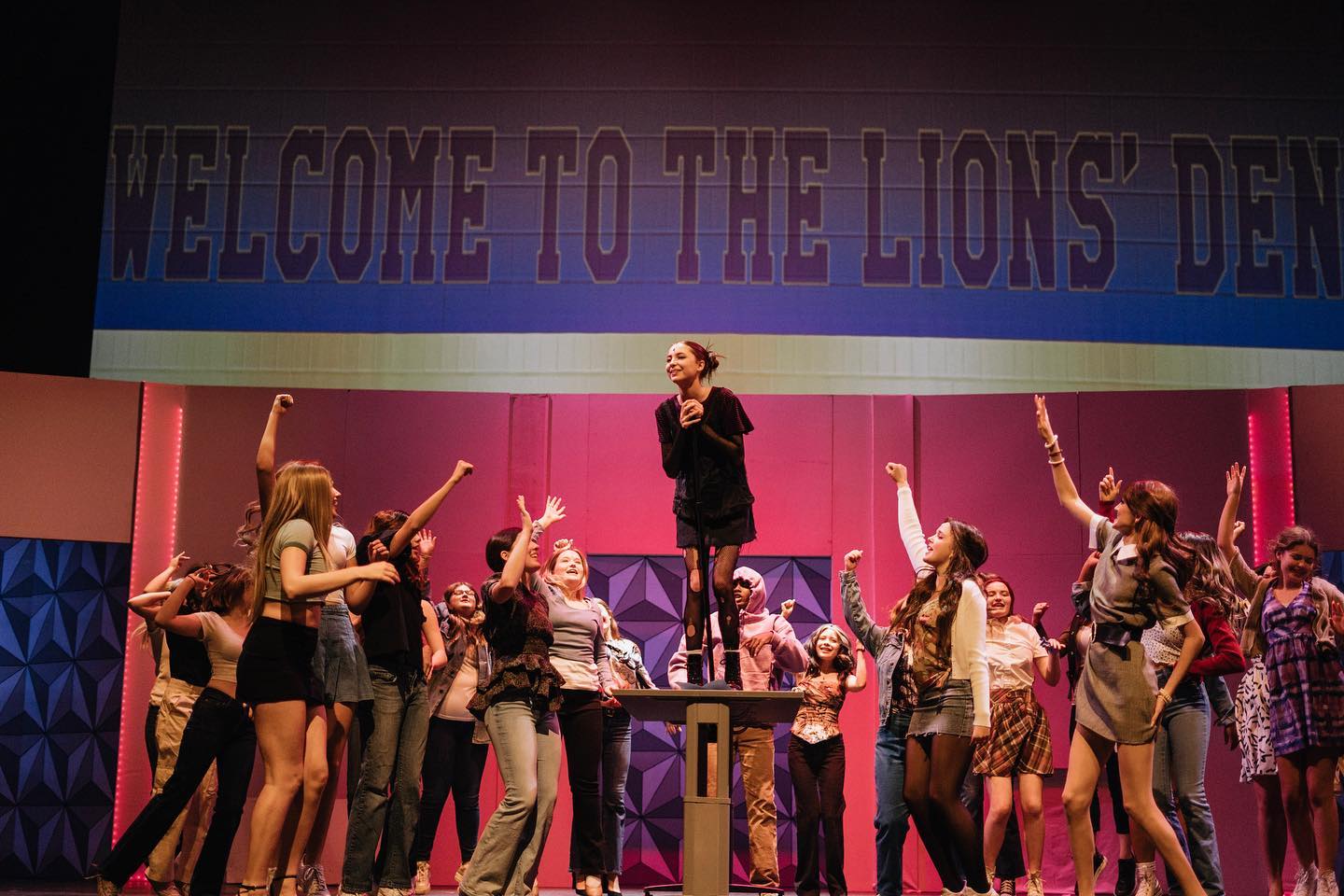 BIDDLE: We are without a theatre for the next 18 months, so we blocked the entire show in other areas of the school, like a locker room, a gym, a hallway, and other non-theatrical spaces. We rented the Allen Performing Arts Center for our performances, and because of these challenges, tech week was only the third time we had been on a real stage during our entire rehearsal process.